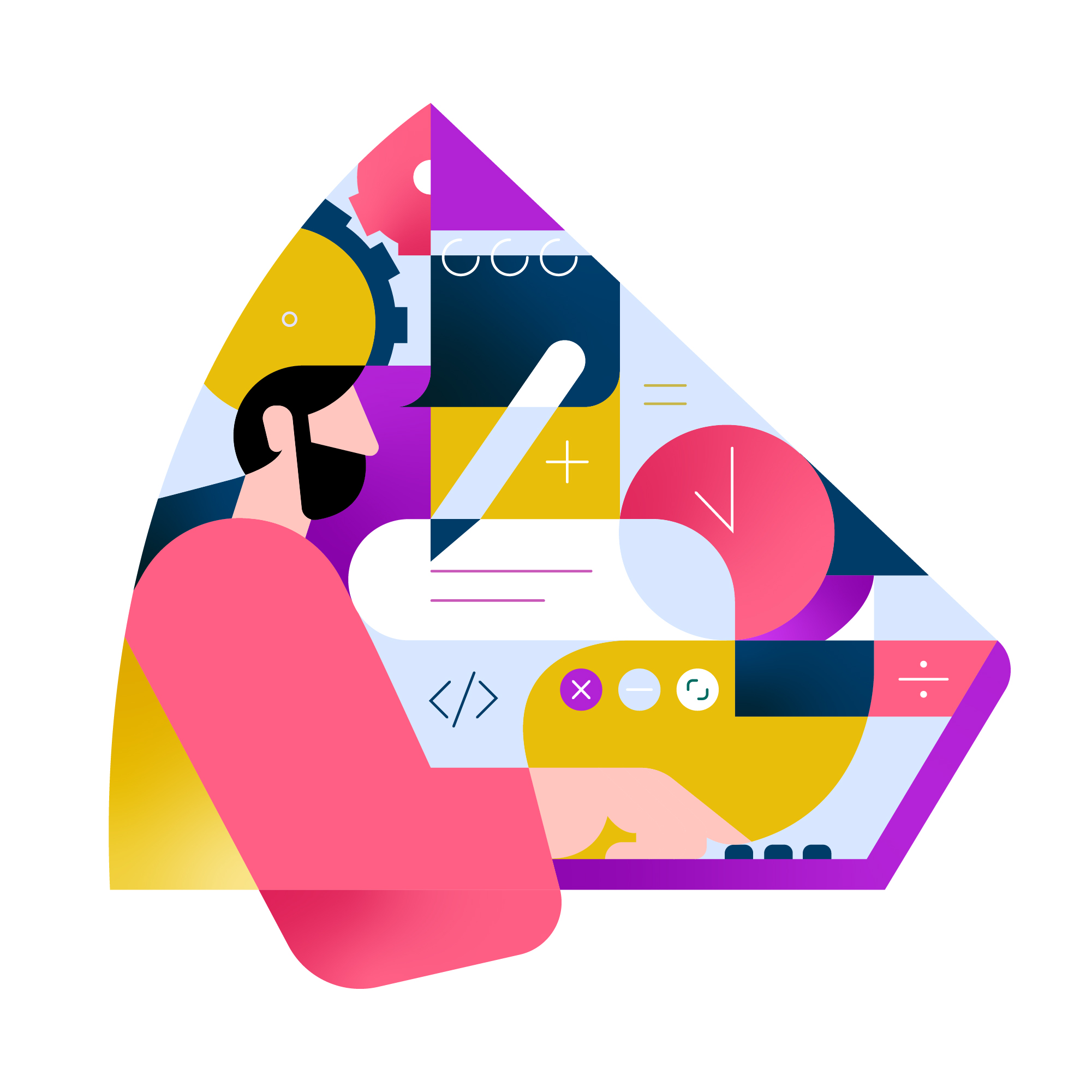Set of illustrations to accompany an article I wrote about my experience of going through a coding bootcamp and how that experience informed my illustration practice. The whole article can be found under this link